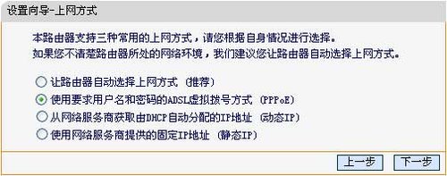 在“上网方式”选择中,根据自己的实际情况进行设置,一般的拨号上网使用PPPOE方式,如果不清楚自己的上网方式,可尝试使用“自动选择”,如果还是无法正确识别上网方式请与网络供应商联系。