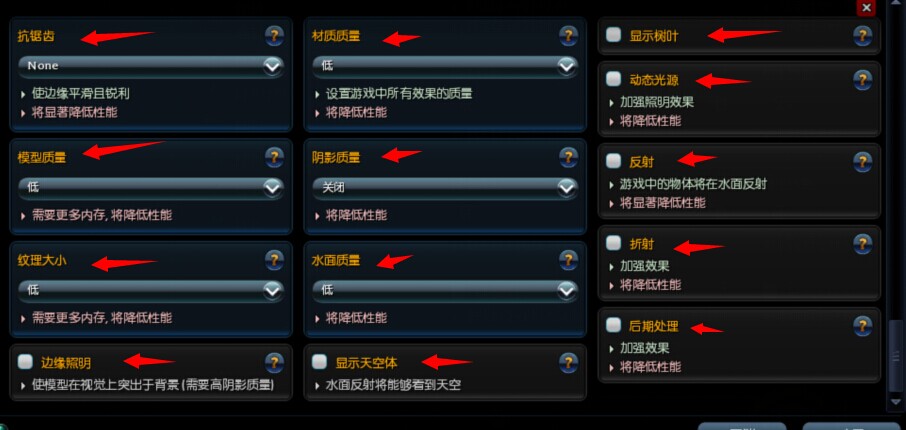 显示驱动:DX9可以获得更好的画面 OpenGL对低配兼容更好但是OpenGL高设定可能有些电脑的水池看起来像一面镜子一样平跟透明。所以大家自行选择