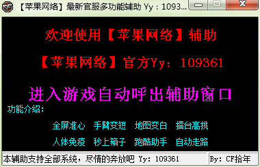cf苹果网络多功能辅助是一款专为CF玩家所设计的多功能辅助工具。该工具可支持全部系统使用,不管你是什么系统都不用担心该软件不能运行。有需要的玩家可以下载用用。