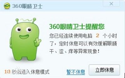4、到了休息间隔,360眼睛卫士安仔自动弹出。如下图