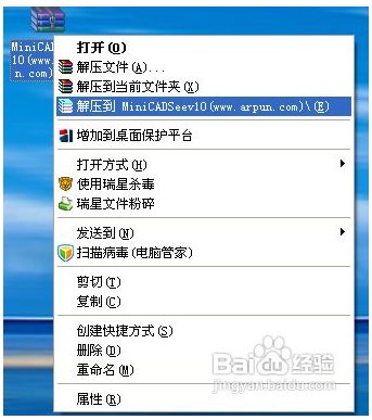 第1步:下载cad迷你看图软件到桌面,通过右击鼠标,将其解压缩。