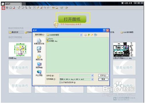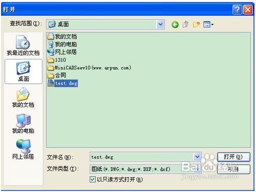 第7步:在打开对话框中,选择相应的文件路径,并选择文件,如下图所示,我选择打开桌面上的dwg文件。