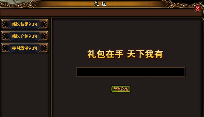 2,选择赤月激活码输入您所领取到的激活码,点击领取物品