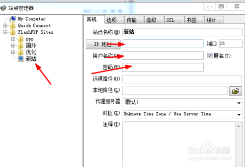 打开站点管理器窗口,点击左下角的“新建站点”按钮。