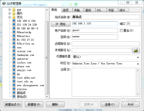 如果要将站点进行分类,可以点击“新建组”再把站点加入到相应的文件组。