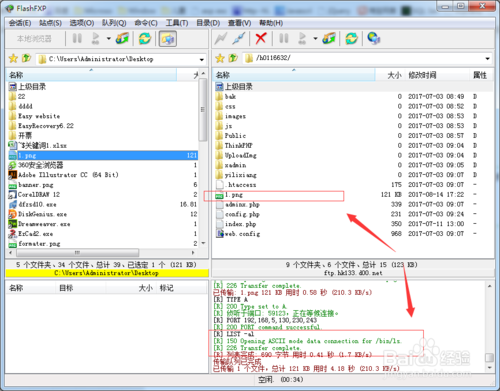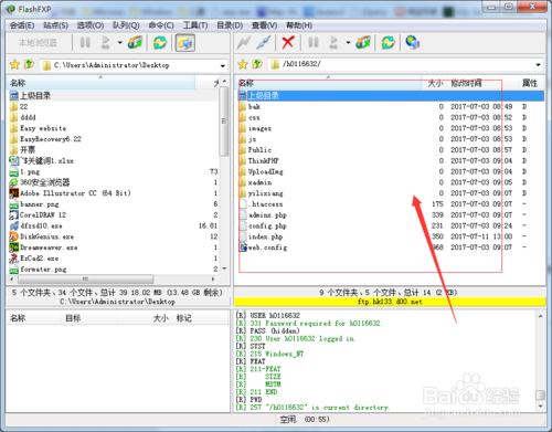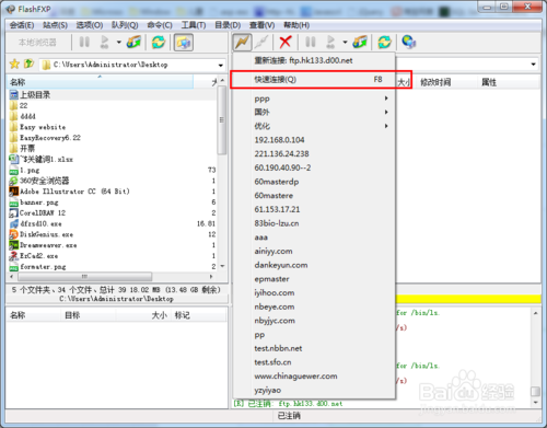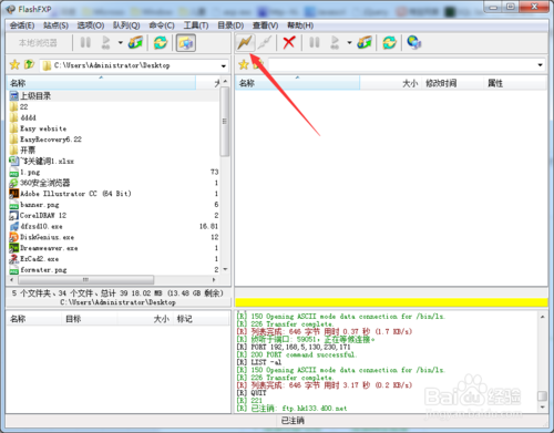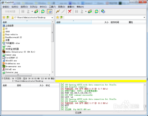 打开软件,先熟悉一下软件界面,左侧为本地电脑目录,右侧为服务器上的目录。