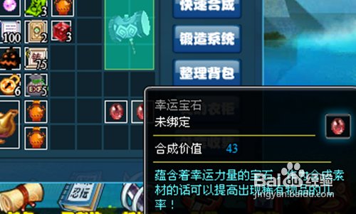 1.用合成价值43的幸运宝石合成,也可以混合橙装、金装合成
