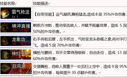 以长枪为武器,身着重铠,招式大开大阖,如龙入海,似虎下山,近战无人能敌。