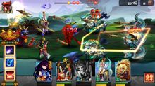 《暗黑战魂》的游戏主界面为横向的卷轴式场景,每个场景中都有相应的功能,并且功能名都非常突出显示在界面上,玩家可以很直观的看到,并且进行点击。游戏中还很贴心的进行了功能提示,玩家如果在某个功能中有未领取的奖励,或者是未升级英雄,都会在这个功能出以红点进行提示,玩家可以很容易发现自己遗漏未处理的事情。战斗中,玩家要做的就是根据战斗的情况释放阵法技能,并且在玩家卡牌人物集满怒气时候点击卡牌释放技能即可,不过由于战斗画面下并没有快进按钮,所以战斗节奏上会显得比较的轻松。