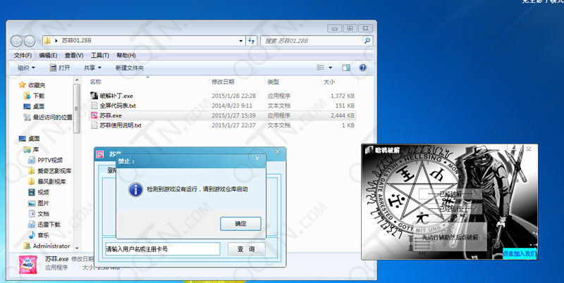 3.当显示“已经破解”,即完成,随便随如帐号登陆