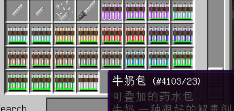 这个mod添加了可叠加的药水包,最大堆叠数为8,同时加入了可叠加的牛奶包。