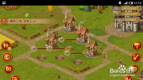 选好位置后一个工人就会抱着材料来盖房子了,可是问题来了,造一半的时候木材不够了,它会在未完工建筑的上面有一个叹号的标志,就表示有材料不够用了。