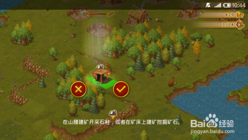 除了大量需要木材,还大量需要石料,点击建设一个小矿,选择一个石料多的山崖,然后点勾建设吧,也多建几个吧。