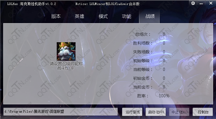 1、支持全自动匹配\人机\统治战场\极地大乱斗等模式的挂机、练级和刷金币