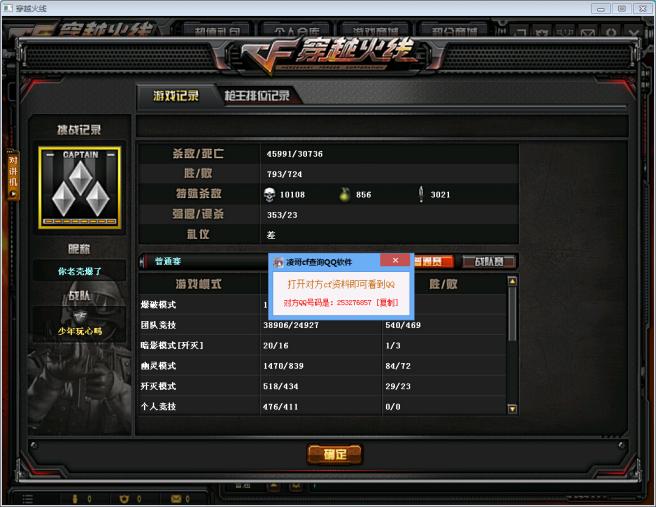 用于查询CF穿越火线玩家的QQ号码