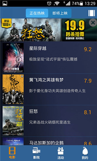 丰富的海报、查看影片实时评论和参与对影片的评论和评分;
