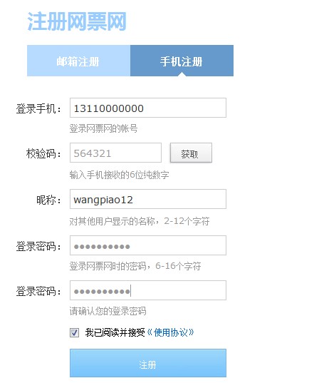 第一步:打开网票网,点击页面上方"注册"进入注册页面。