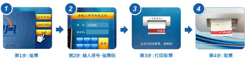 先按键盘上的数字验码,在键盘上输入接收到的“序号”按确认,再输入“验票码”按确认,纸质影票就会从出票口打印出来,即可取票入场。