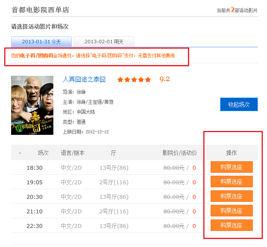 注:如果您持有多个电子码,您可以挑选多个座位,在最后订单确认时填入,即可购买多个座位,不必重新下单。