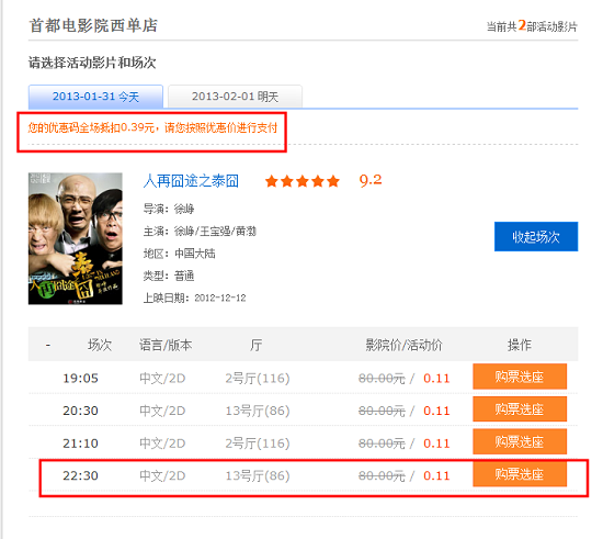 在线选座,拒绝排队,在线挑选心仪座位。优惠票价,拒绝浪费,提供优惠折扣票价。