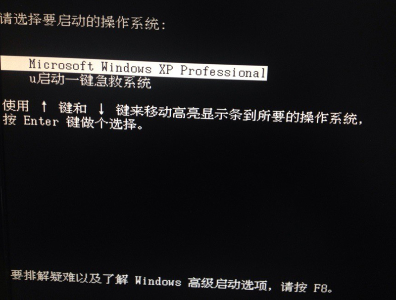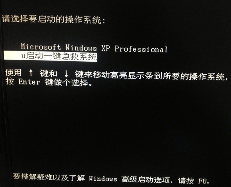 2、如上图所示,出现两个选项,第一个为默认的从电脑本地系统启动,第二个则是u启动一键急救系统;看到了吧?正如上面说的u启动一键急救系统是在系统无法进入的时候能帮您维护系统的;现在让我们选择到“u启动一键急救系统”并按下回车键“Enter”进入;如下几张图所示为进入u启动一键急救系统,这个急救系统其实就是win8PE系统;