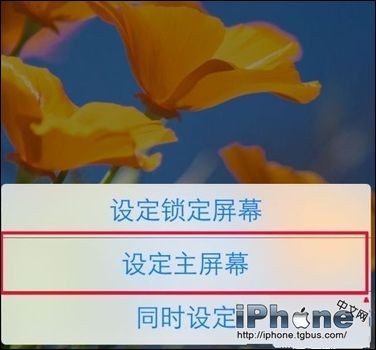 5、置已经选择好一个,点本张图片,出现下面图片点“设定”,然后会出现下面的情况。在点“设定主屏幕”。