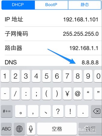 4、最后,找到DNS一栏。如图所示,因为我用的是电信网络,所以看到的DNS服务器地址是电信的。根据自己的网络服务商的不同,更改正确的DNS服务器地址,也可以使用谷歌DNS 8.8.8.8。