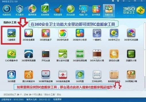 如果采用第一种方法,效果还是不明天,C盘剩余空间依然很少的话,那么我们需要对一些软件进行系统搬家,我们可以将安装在C盘的软件全部转移搬到D盘或者其他盘。这样很多人会问,那不是要先卸载C盘软件再下载安装在D盘吗?其实不要这么麻烦,使用360安全卫士的搬家工具,即可一键将C盘软件转移到D盘,无需再次安装。