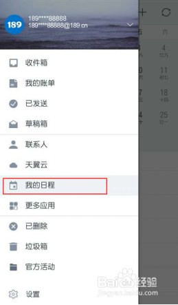 先在本站下载【189邮箱】,登录注册后,从邮件列表进入“我的日程”