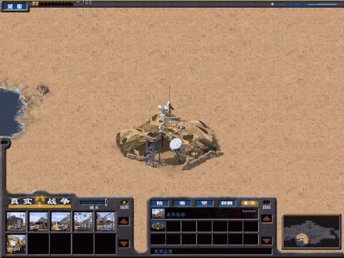 下面讲解一下游戏的设施和兵种(具体参看双方科技树组成图)。上面已经说了,游戏根据兵种来具体分布玩家制作兵种的顺序,这点有些象星际争霸。这时首先要求玩家建立起各自兵种对应的指挥中心(CommandCenter),才能进行后续的建设工作。点击你的主基地(MainHeadquarters),屏幕左下角就会出现可以建造的建筑选单,其中的内容会根据玩家攀爬科技树的情况来具体增减变化。