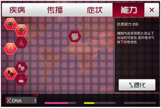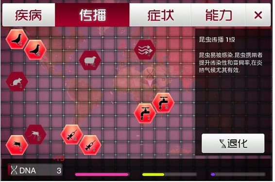 之后升级血液传染和蚊虫传染,保证贫穷地区和炎热地区的传播有效性。这里蚊虫传播可以用能力中抗性终极大招代替,效果差不多。
