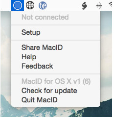 先在Mac上启动MacID客户端,Menubar上找,默认当然是未连接,选择「Setup」: