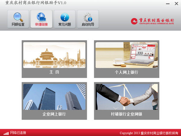 农村商业银行网银助手是农村商业银行专为用户推出的一款网银助手,用户只需在自己的设备上对这款软件进行安装,即可从相应的列表中找到自己的网银绑定方式,让你以后可以更轻松地对网银进行操作,不需要再重新对U盾等进行扫描。
