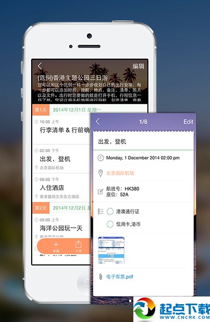 卡片式的行程计划,每一张卡片除了行程信息(航班,火车,酒店,餐馆,景点等)还可以添加提醒,清单,备注,照片还有文件等。当用户到达目的地时,只需打开App就可看见当前行程信息,再也不用翻包包找文件,或者在各个不同App间频繁切换找行程资料啦!