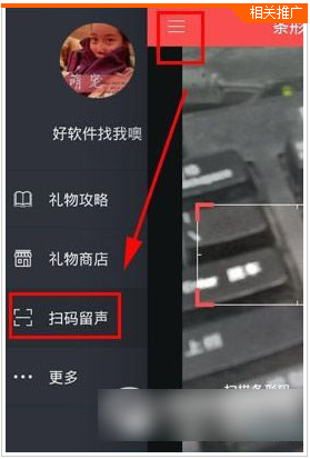 6、 除了选购礼物之外,礼物说还支持扫码刘生功能,打开礼物说后点击在主界面【≡】--【扫码留声】;