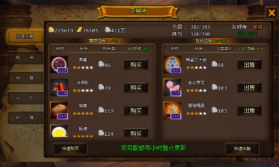 使用【交易所】里的【快速购买】与【快速出售】按钮可以让你在各个港口间简单的贸易。