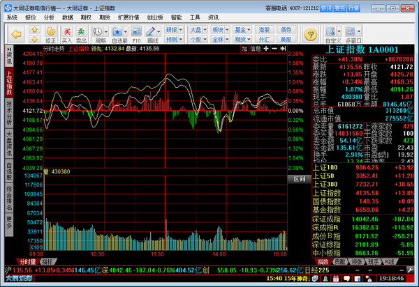 大同证券同花顺为您提供实时行情、银证转帐、在线交易!让您投资省 时、贴心、方便! 实时行情+技术分析:实施行情报价,提供日、周、月K线等分析周期,提供成交量等分 析指标。 在线交易:提供买、卖、撤单、查询等网上交易系统所具备的全部交易功能。 银证转帐:提供方便快捷的资金转入转出服务。 股市资讯:提供丰富的资讯信息和股票公告。 析指标。 在线交易:提供买、卖、撤单、查询等网上交易系统所具备的全部交易功能。 银证转帐:提供方便快捷的资金转入转出服务。 股市资讯:提供丰富的资讯信息和股票公告。