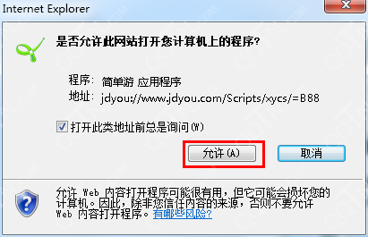 6、这是会调用“简单游”软件,在弹出的界面中,点击“允许”