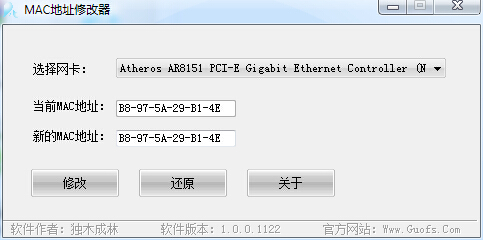 网卡mac地址修改一般来说是不必要的,毕竟这个物理地址在出厂时是独一无二的,但是有时网卡不能联网时,就可以通过mac地址修改器来修改mac地址,修改之后就又可以用了。你还利用伪造的MAC地址达到绕过一些根据mac地址分发ID的试用软件限制、躲过被管理员封杀mac地址不让上网等作用。