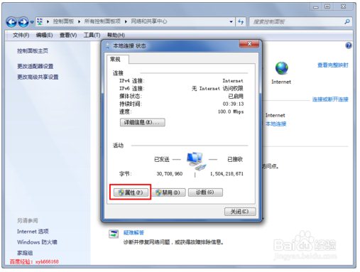 点击本地连接后,就打开“本地连接 状态”对话框,点击左下角的“属性”,如下图所示
