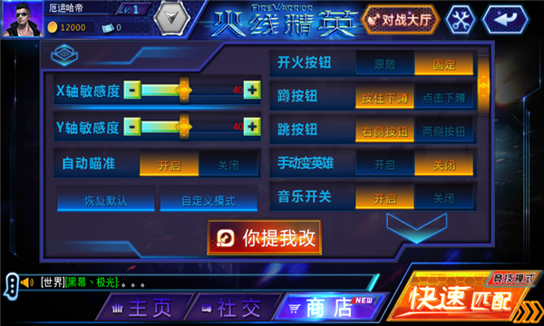 开火按钮:小编建议玩家选择跟随。对战中转身加上开火可以连贯完成,如果选择固定,则需要转动屏幕再点击开火键来攻击敌人。