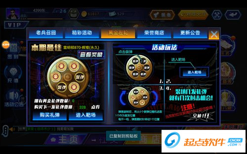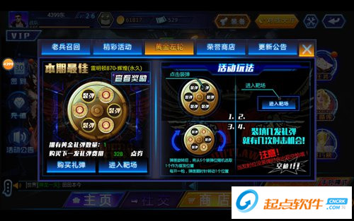 在黄金左轮靶场中,奖励是会进行更新的,玩家们如果有自己想要的武器在奖励中,东东建议将子弹先填充一半打,黄金左轮靶场的几率还是蛮高的!没必要全部都装满,那样也会出现空弹的几率。
