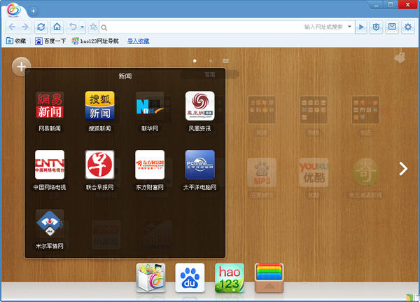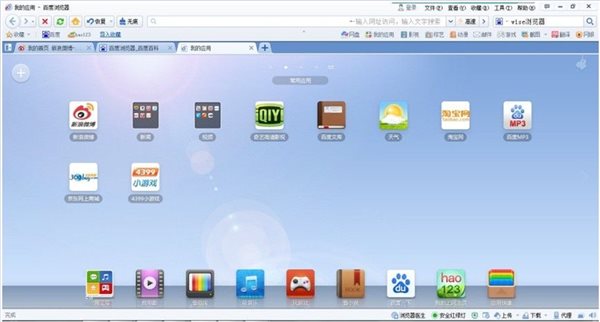 目前百度浏览器本身的功能不多,亮点在它的“浏览器宝库”,浏览器宝库继承了百度开放平台众多的APP应用,在网页上就能完成类似图片编辑、收听网络音乐、网络购物、首发邮箱等工作。