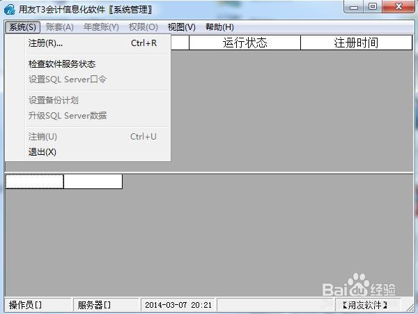 只需要两个步骤就可以实施完成,第一步骤实施的是进入注册界面,双击“系统管理”,在菜单栏处找到系统菜单,左键单击,点击注册按钮就进入到用户名注册界面。