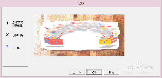 确认无误后,就可以点击“下一步”了,这时会到“记账”这里,如下图。大家直接点击“记账”按钮就好了