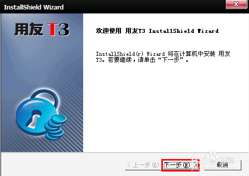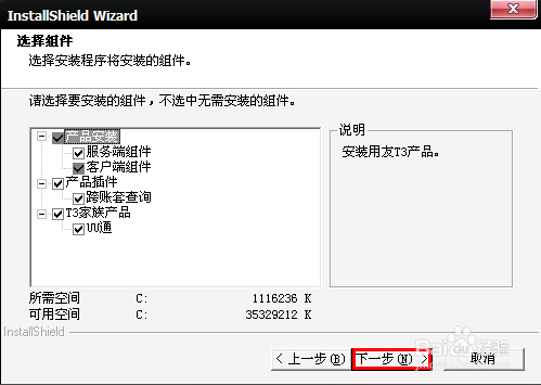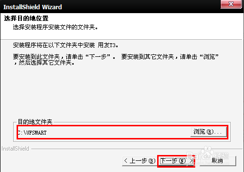 点击浏览 选择安装用友T3的路径,点击“下一步”