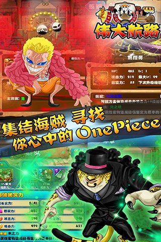 《伟大航路》是一款动漫卡牌类手游巨作,游戏以全球第一超人气动漫《海贼王》为背景,囊括了消除、养成、收集、探索、对抗等多种游戏乐趣,让玩家在丰富多彩的动漫世界中尽情享受征战伟大航路的快感!