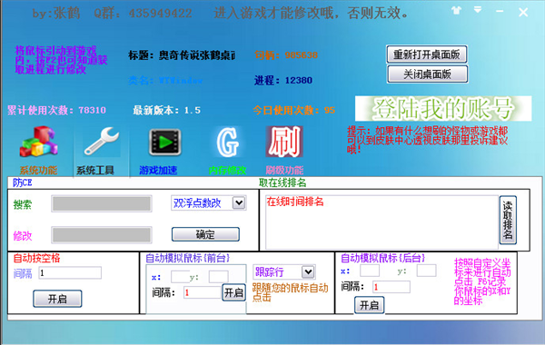 1、下载运行辅助后,可单击重新打开桌面版,就可直接打开奥奇传说桌面版,直接游戏。