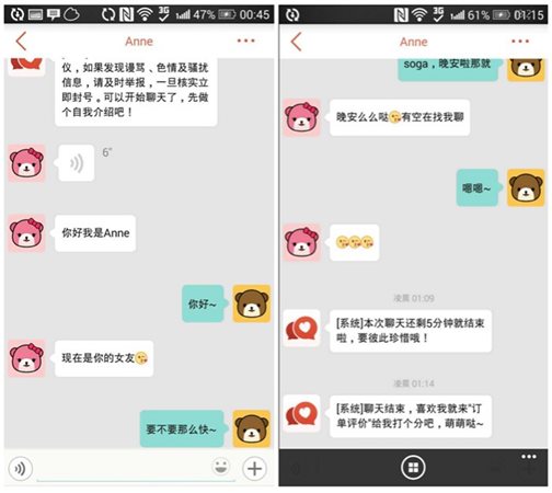 目前喃喃只有虚拟女友,只能为满足广大宅男的需求。未来,也会逐渐开展虚拟男友业务,满足广大女性的需求。
