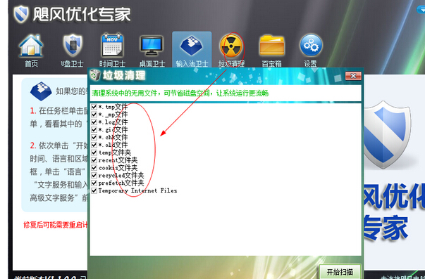 1、安全卫士飓风优化专家的安全卫士分为三个方面:分别是输入法卫士,时间卫士和桌面卫士。